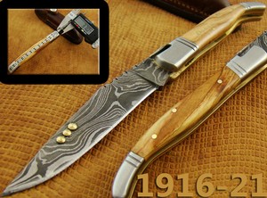 Acier damas 1couches - Manche en bois de cerf. Les couteaux à lames damas sont la quête de tous les amateurs de couteaux. COUTEAU ARTISANAL DAMAS DE J. Serge BRUNA dessine et fabrique ses couteaux de façon artisanale, avec un large. Ce couteau de poche Le Thiers Pirou présente une lame en damas artisanal numérotée.